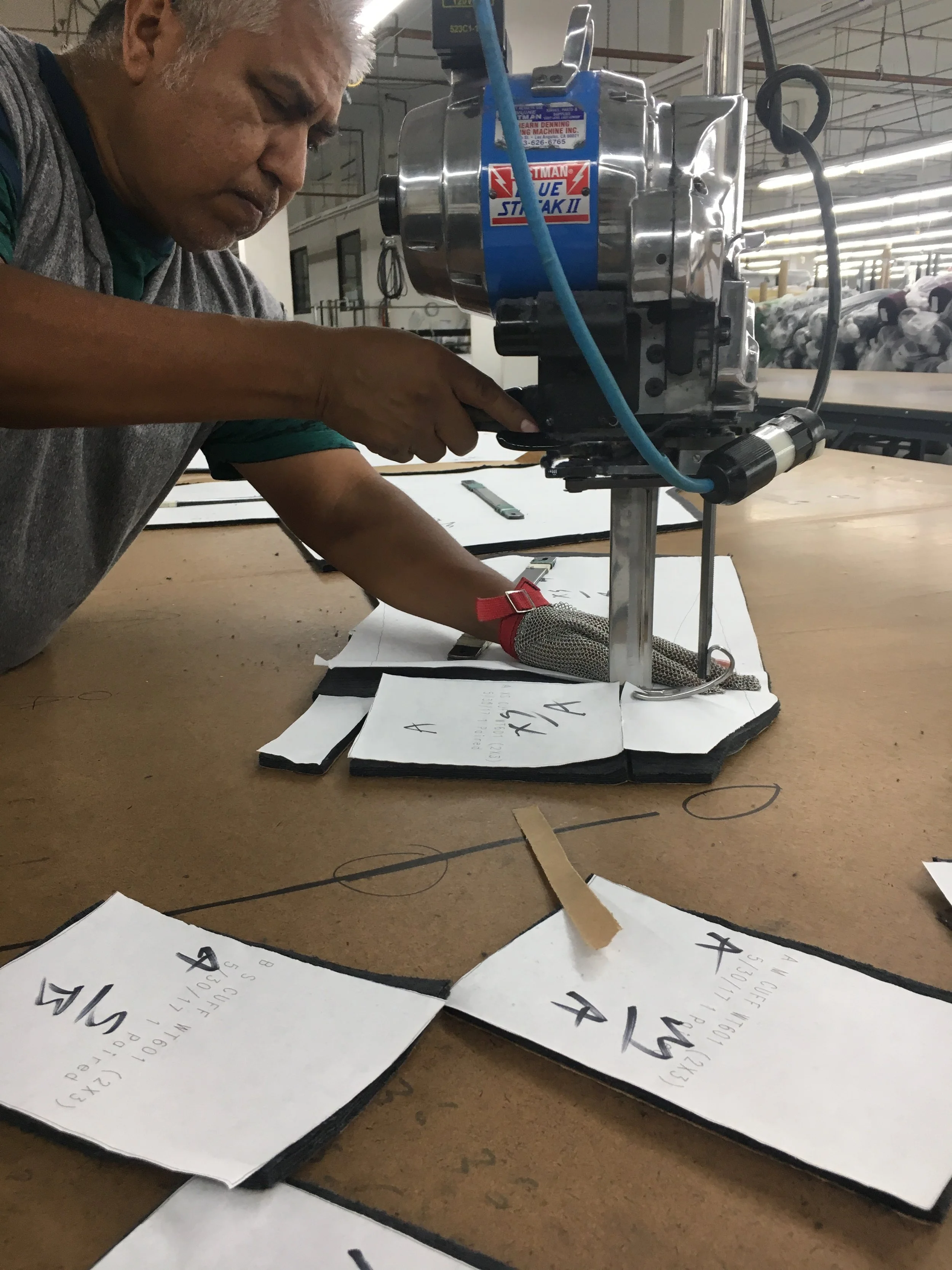 Working closely with domestic cutter ensures quality and speed. Here is a fellow co-worker, cutting out a small run.